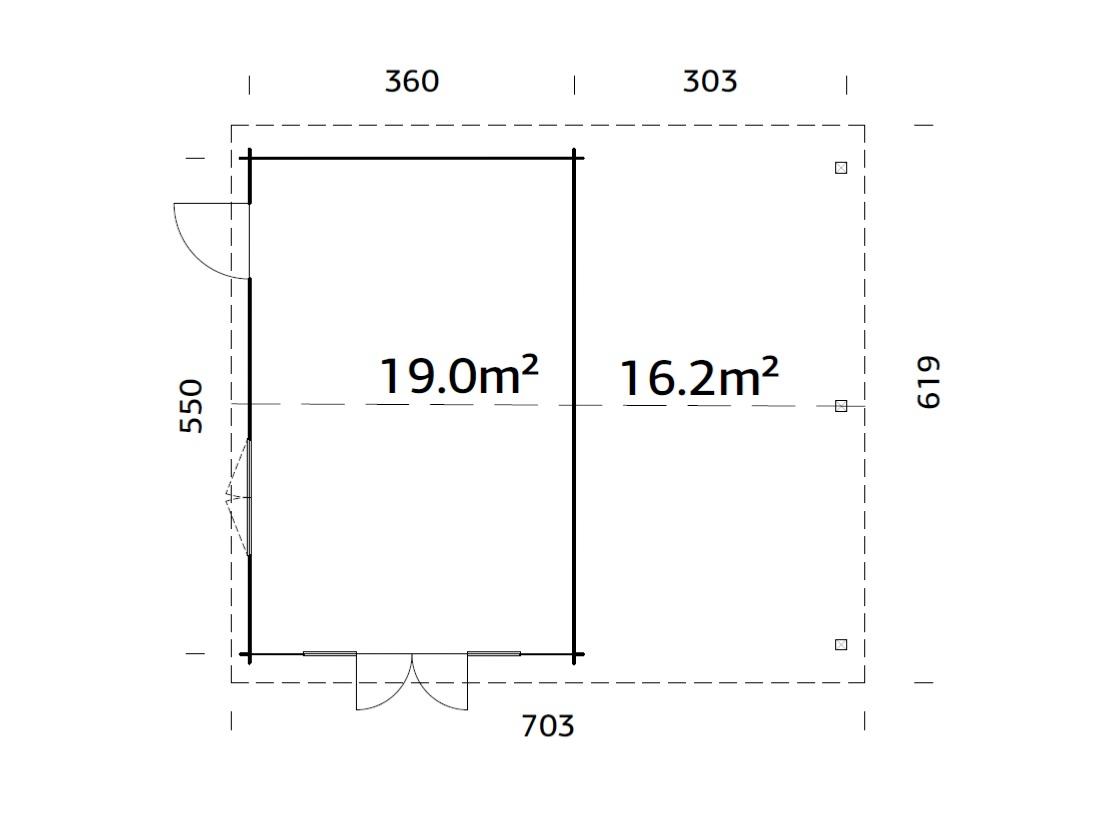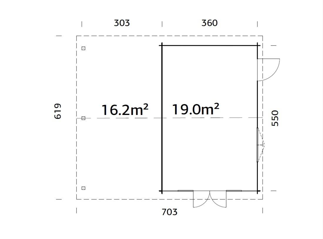 • Surface intérieure : 19,0 m² + extension 16,2 m²