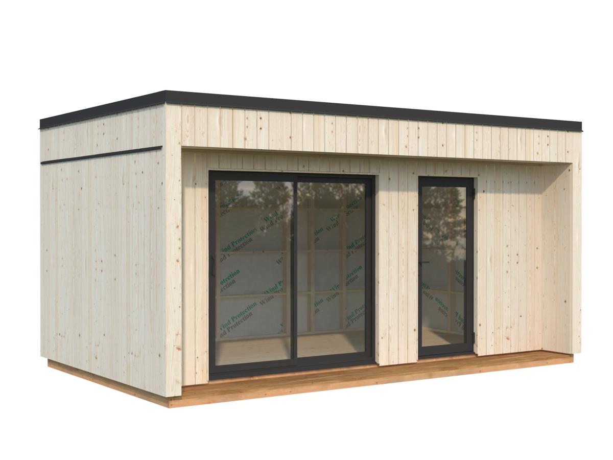 La maison miniature bois Palmako Johanna 13,6 m² est un espace compact et contemporain, idéal comme bureau de jardin, chambre d’appoint ou pièce indépendante. Son toit plat et ses larges menuiseries aluminium apportent une excellente luminosité et une intégration moderne au jardin.