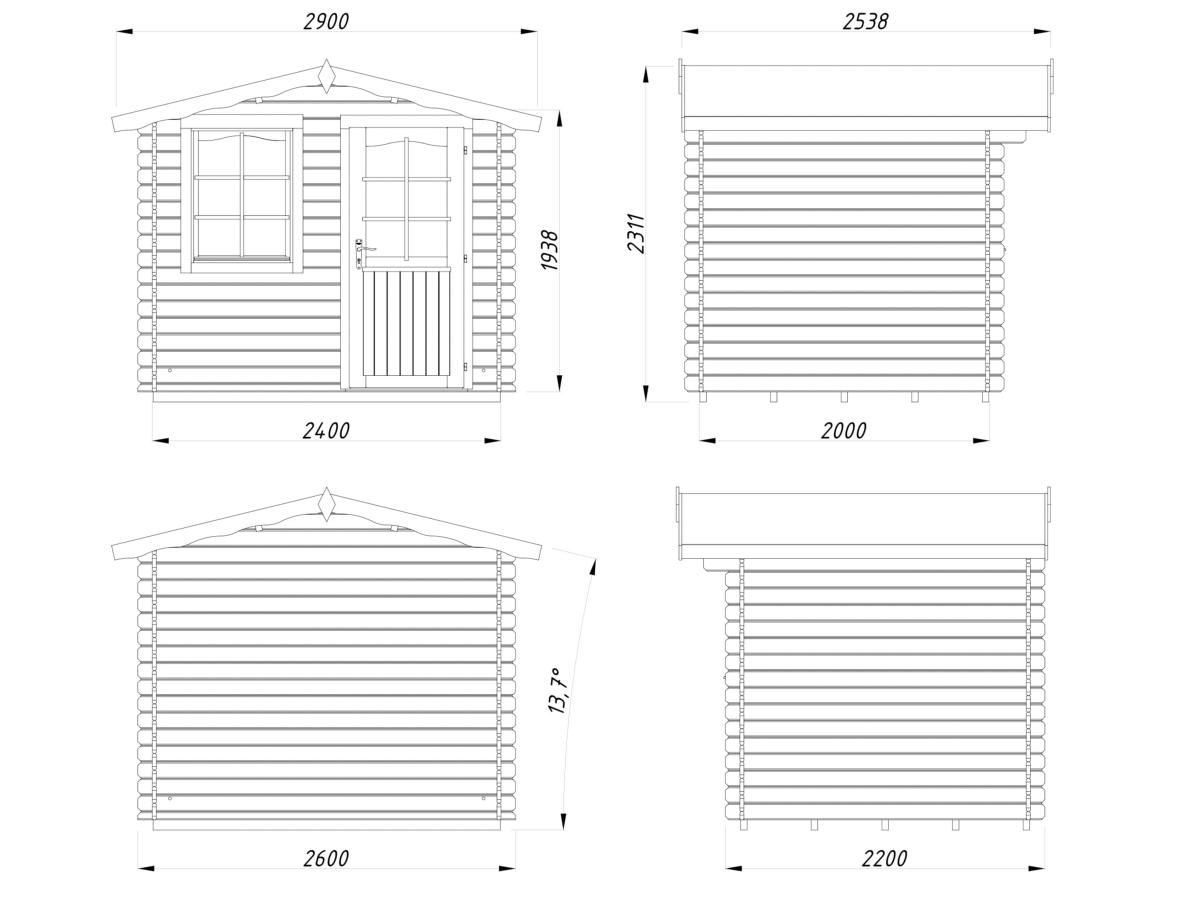 Dimensions abri 4,6 m² épaisseur 28 mm: