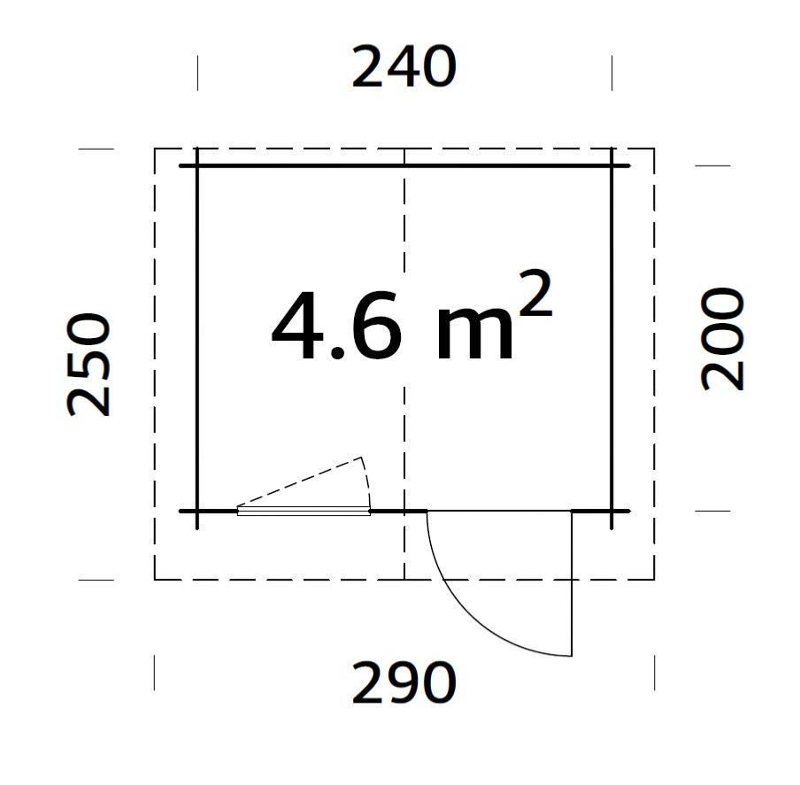 Dimensions intérieures au sol (largeur x profondeur) : 236 x 196 cm = 4,6 m²