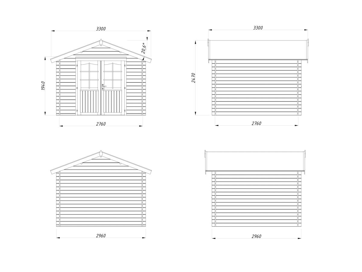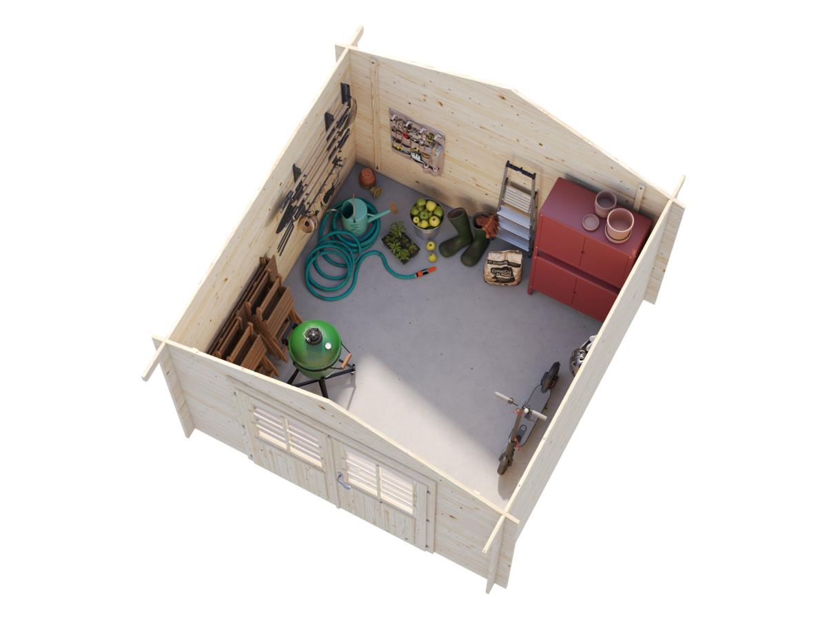Dimensions madriers (largeur x profondeur) : 296 x 296 cm = 8,8 m²