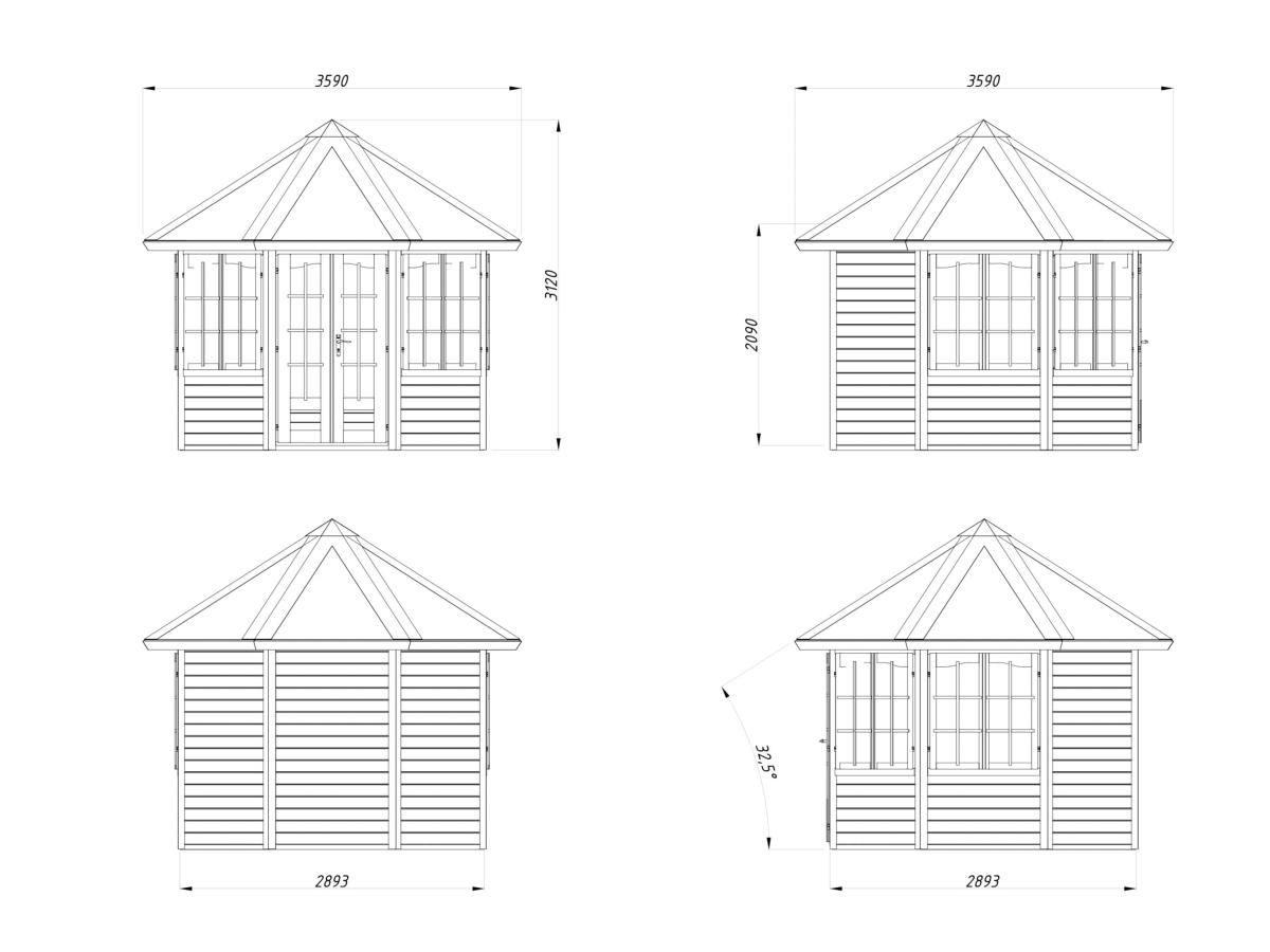 Dimensions Pavillon Veronica 6,7 m² en 28 mm à 4 fenêtres:
