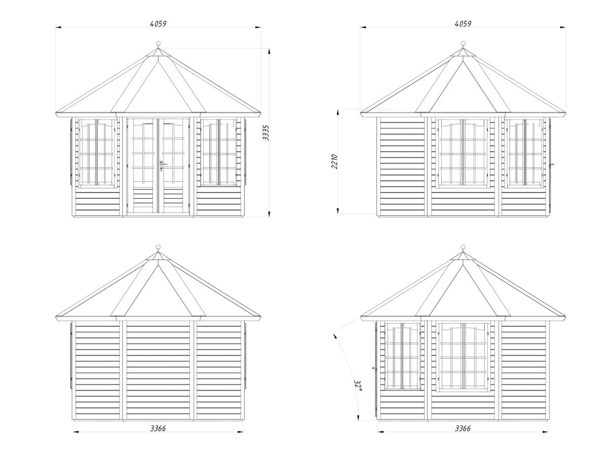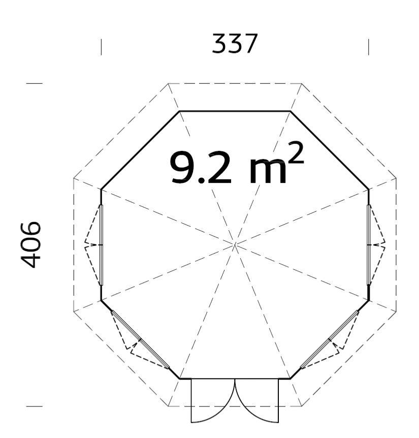 Dimensions Pavillon Veronica 9,2 m² en 34 mm à 4 fenêtres: