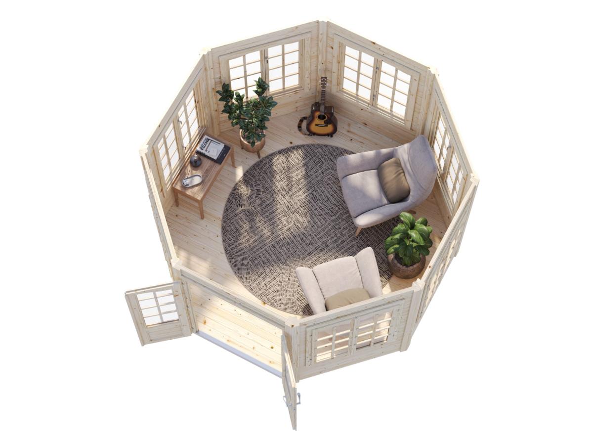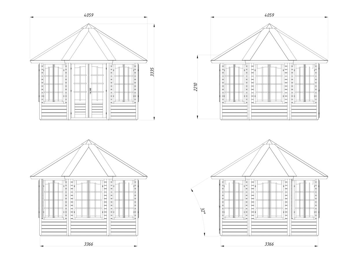 Dimensions Pavillon Veronica 9,2 m² en 34 mm à 7 fenêtres:
