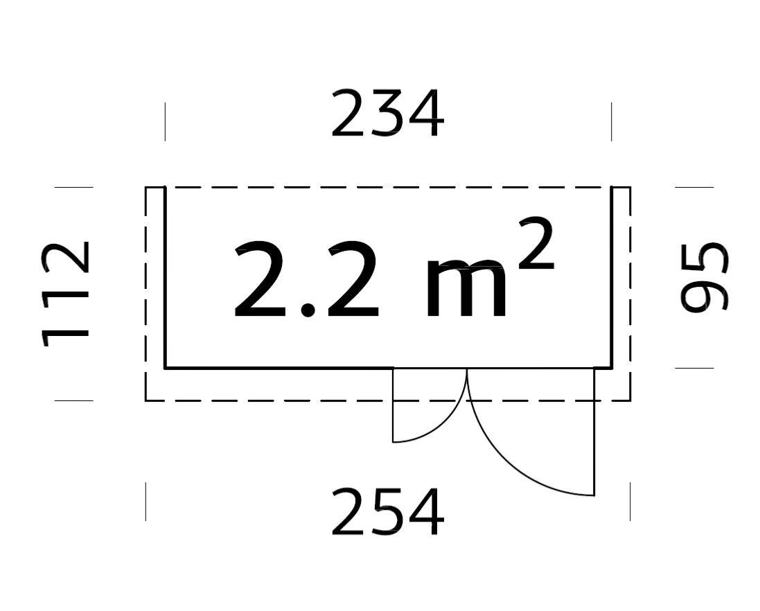Dimensions extérieures paroi (largeur x profondeur) : 234 x 95 cm= 2,2 m²