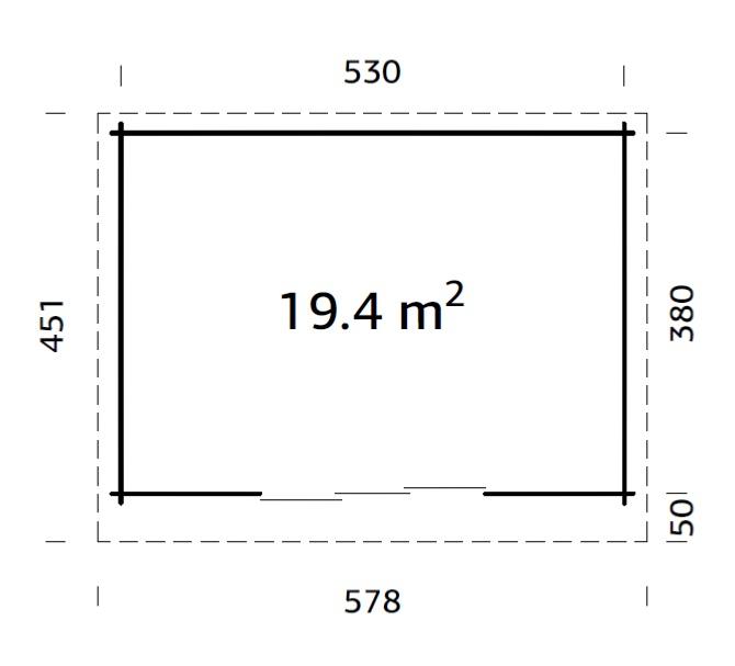 Dimensions extérieures paroi (largeur x profondeur) : 530 x 380 cm= 20,1 m²