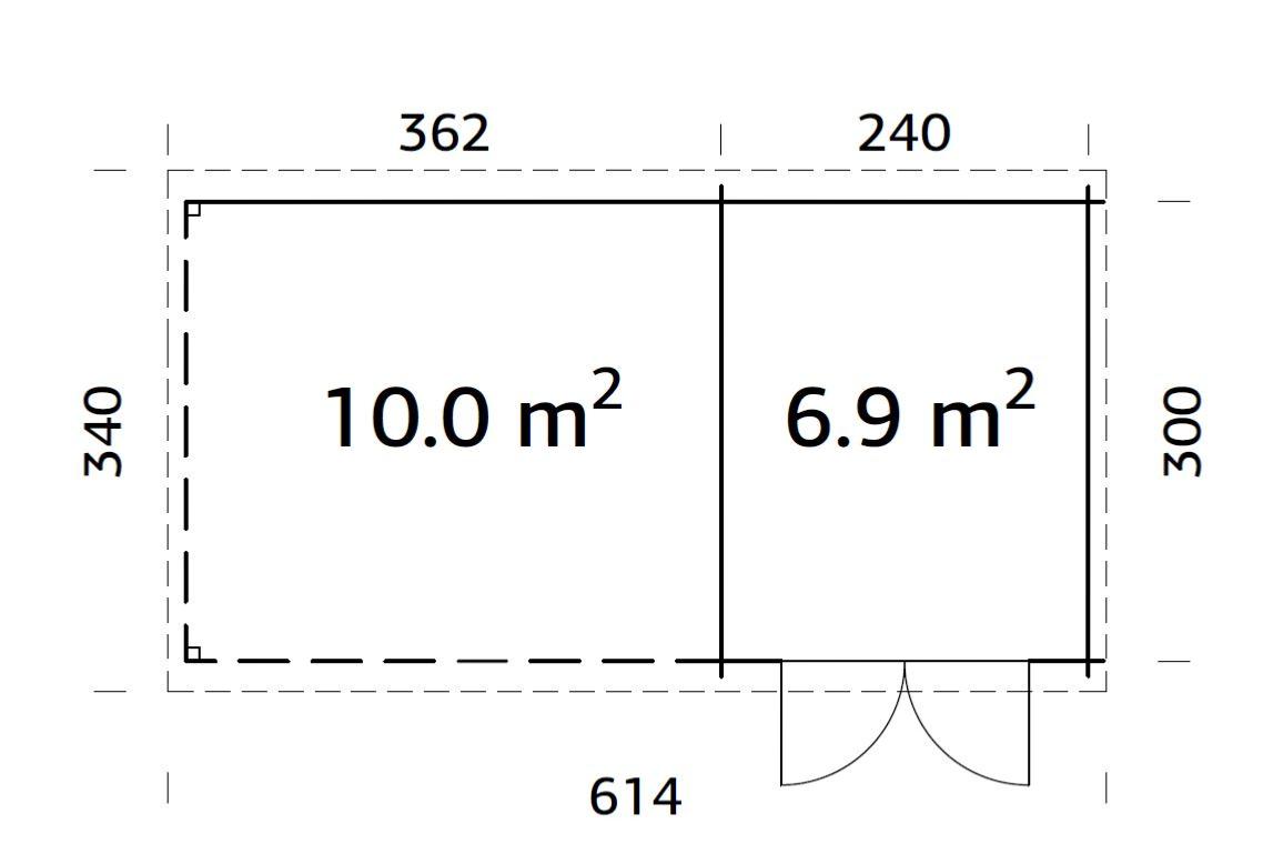 Dimensions extérieures paroi (largeur x profondeur) : 240 x 300 cm= 7,2 m²
