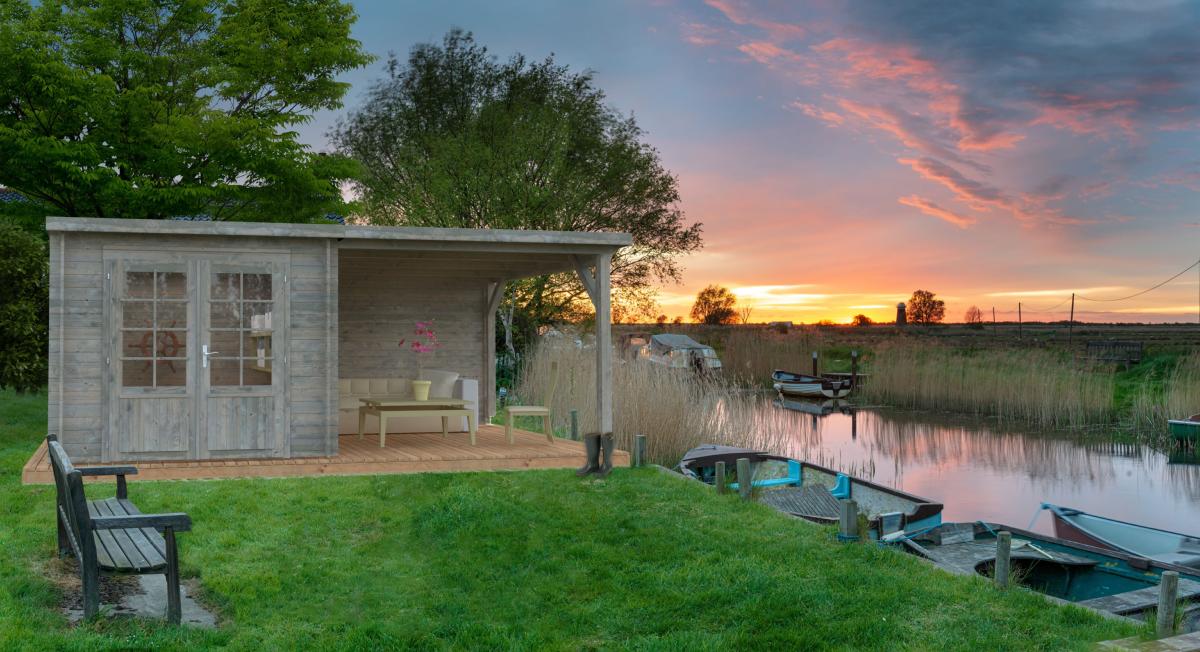 Dimensions abri 6,9 m²+ auvent de 10 m² bardé sur la paroi du fond épaisseur 28 mm:
