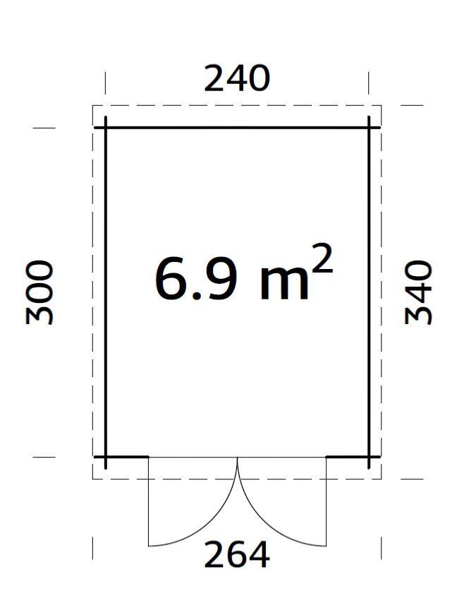 Dimensions extérieures paroi (largeur x profondeur) : 240 x 300 cm=  7,2 m²