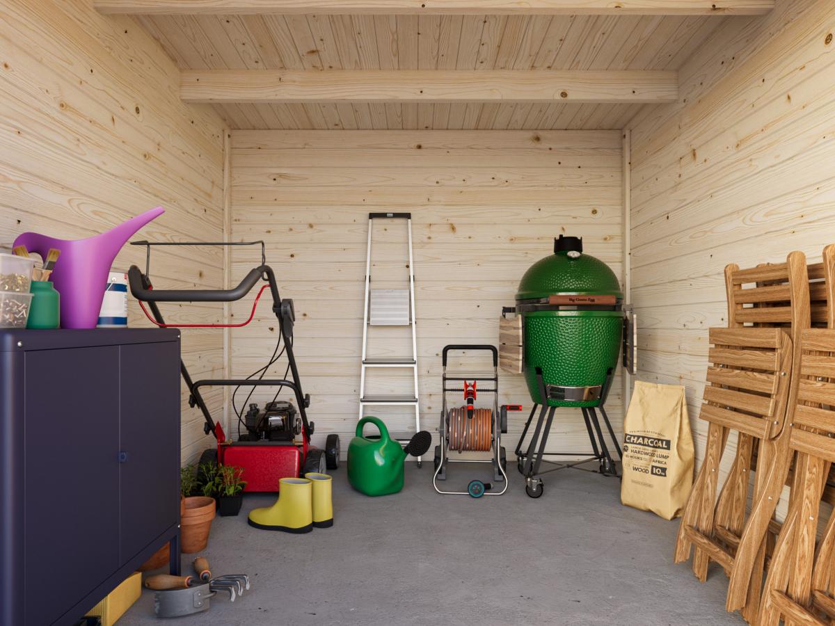 Abri ELLA 6,9 m² toit plat en 28 mm équipé d'une porte double vitrée. Abri traité en option.