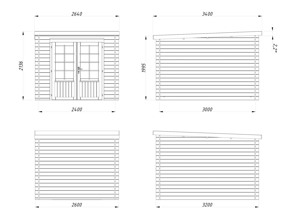 Dimensions abri 6,9 m² épaisseur 28 mm: