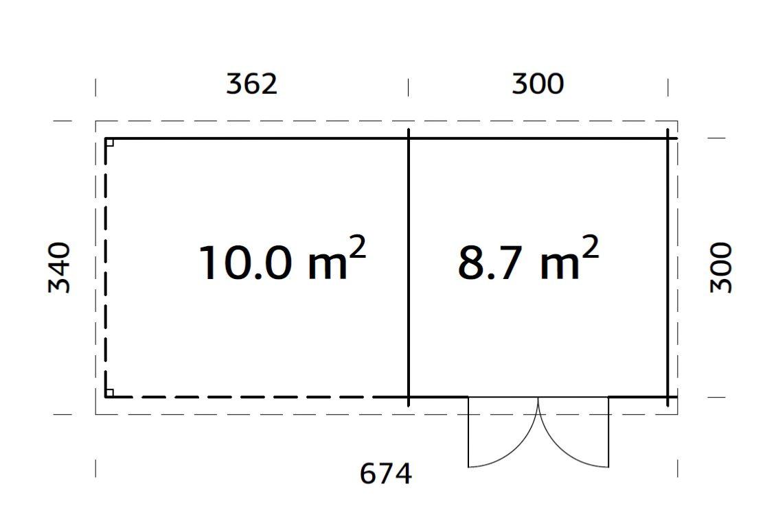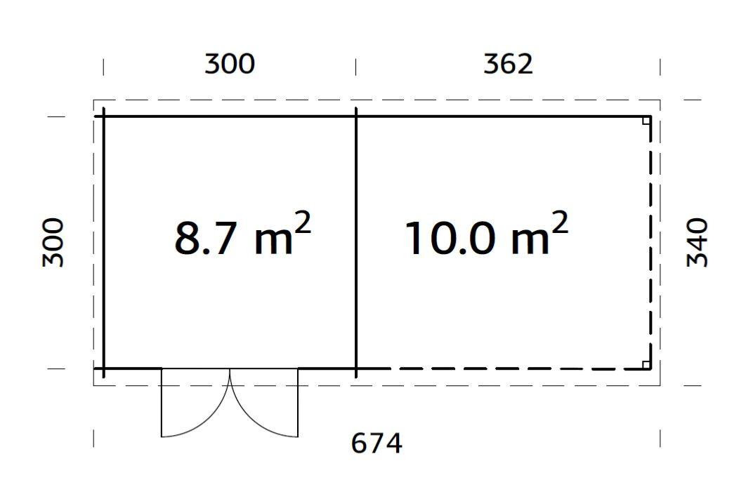 Dimensions extérieures paroi (largeur x profondeur) : 300 x 300 cm=  9 m²