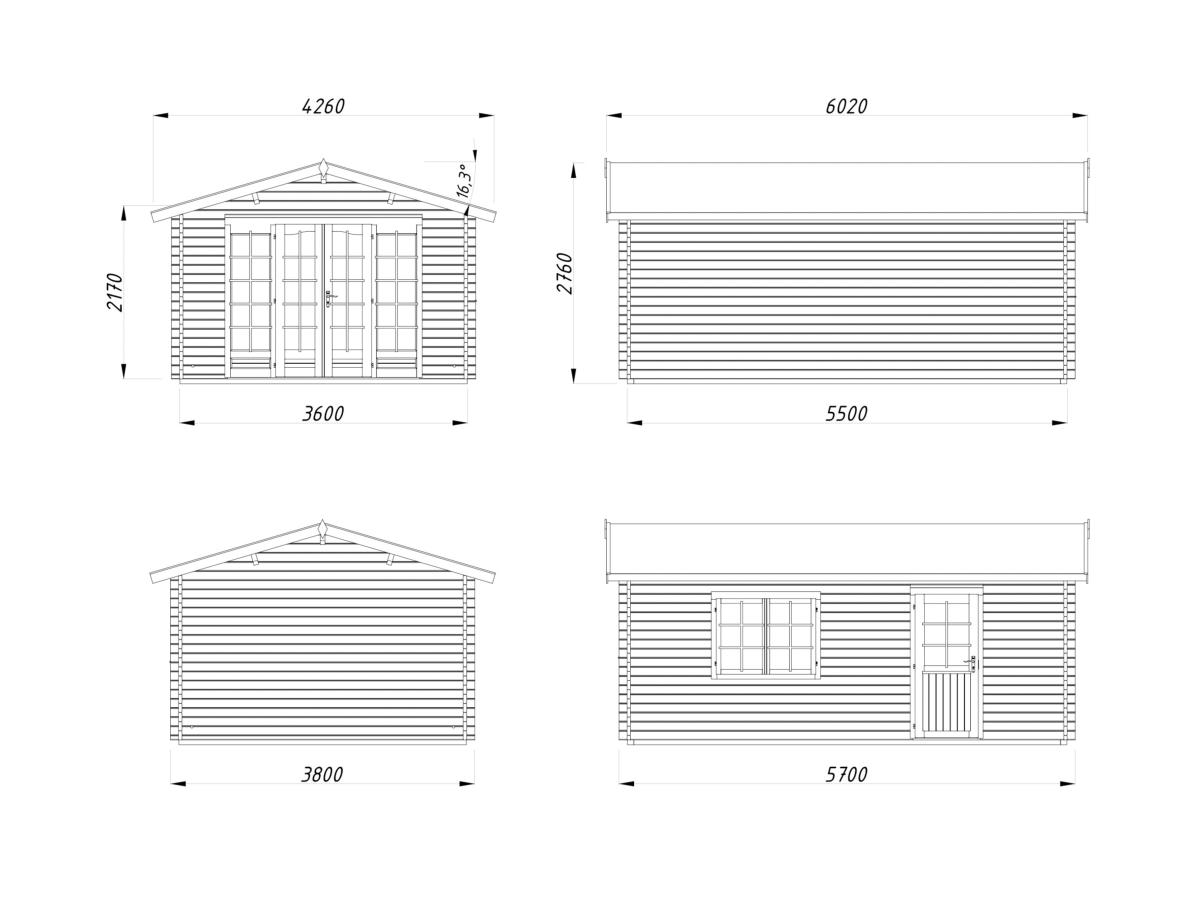 Dimensions abri 19 m² épaisseur 44 mm: