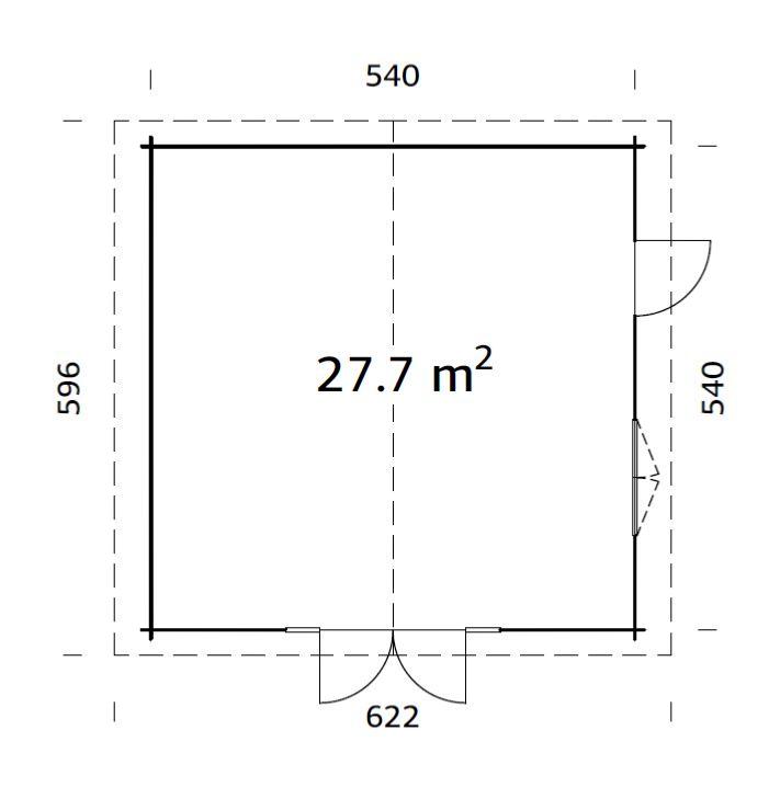 Dimensions extérieures paroi (largeur x profondeur) : 540 x 540 cm= 29,2 m²