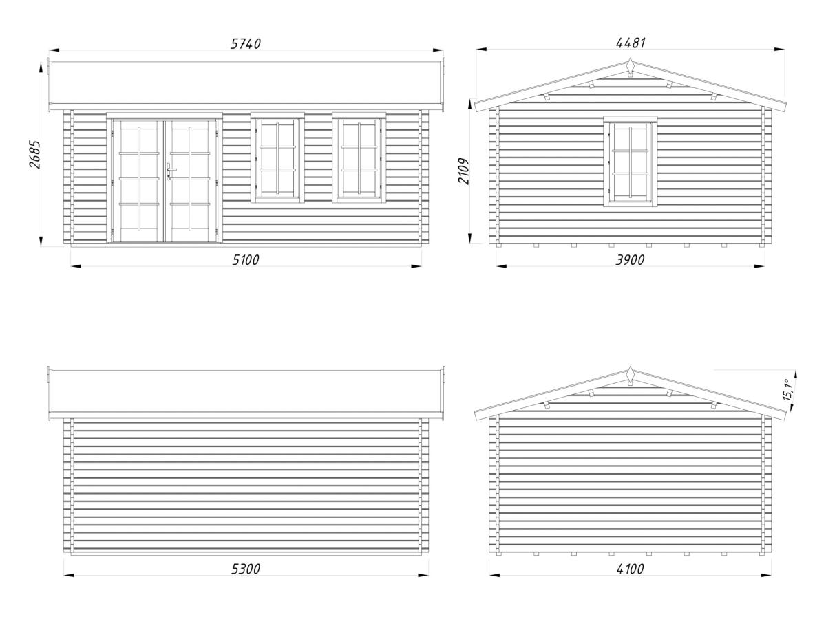 Dimensions abri 19,1 m² épaisseur 44 mm: