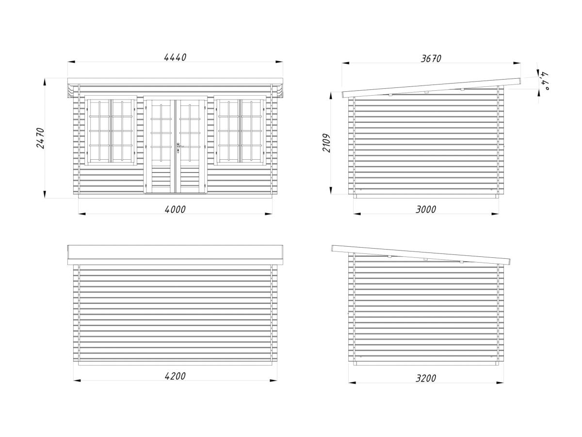 Dimensions abri 11,5 m² épaisseur 34 mm: