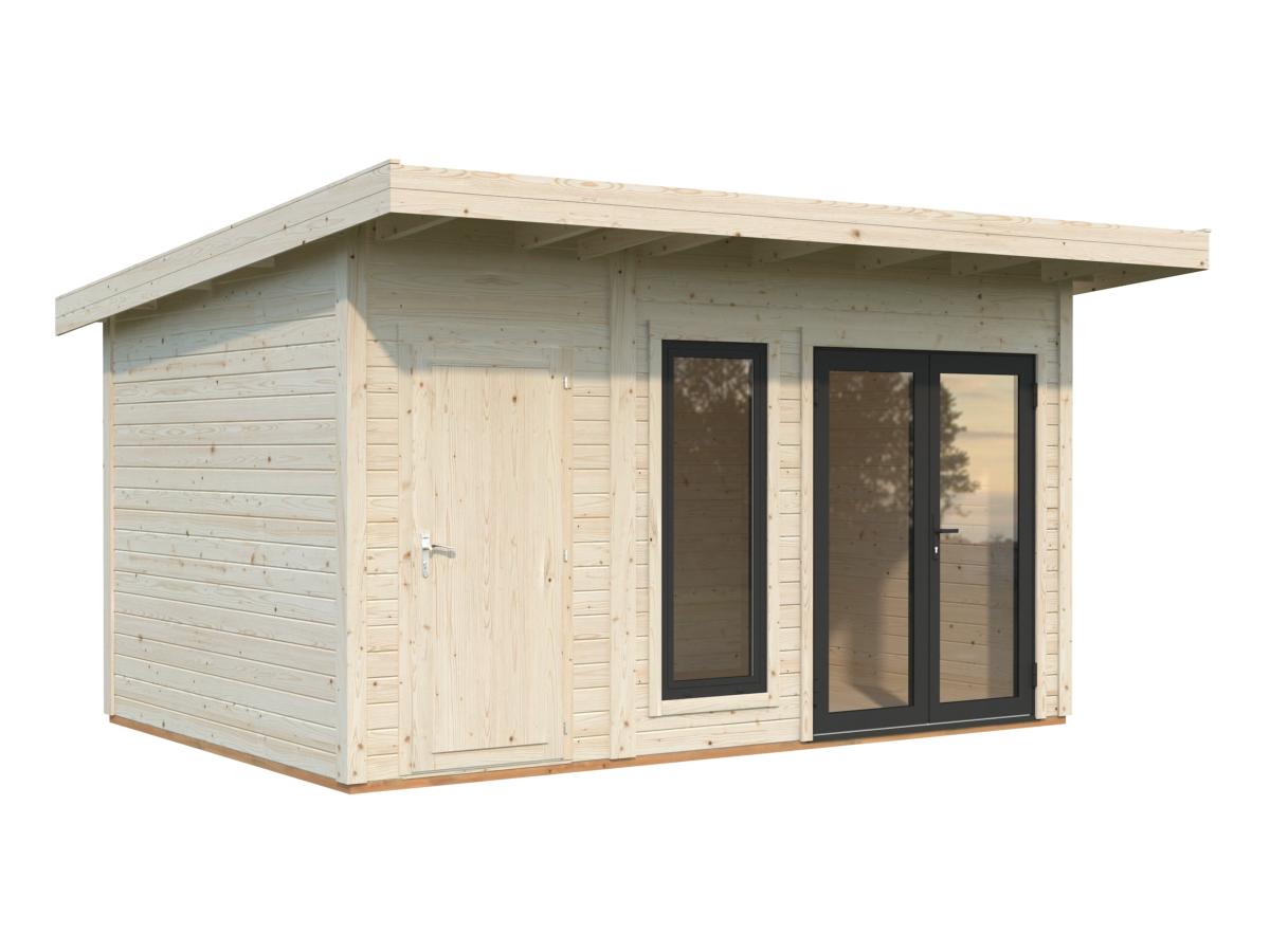 Studio de jardin en bois massif idéal comme chalet de jardin, bureau extérieur ou espace de travail confortable.