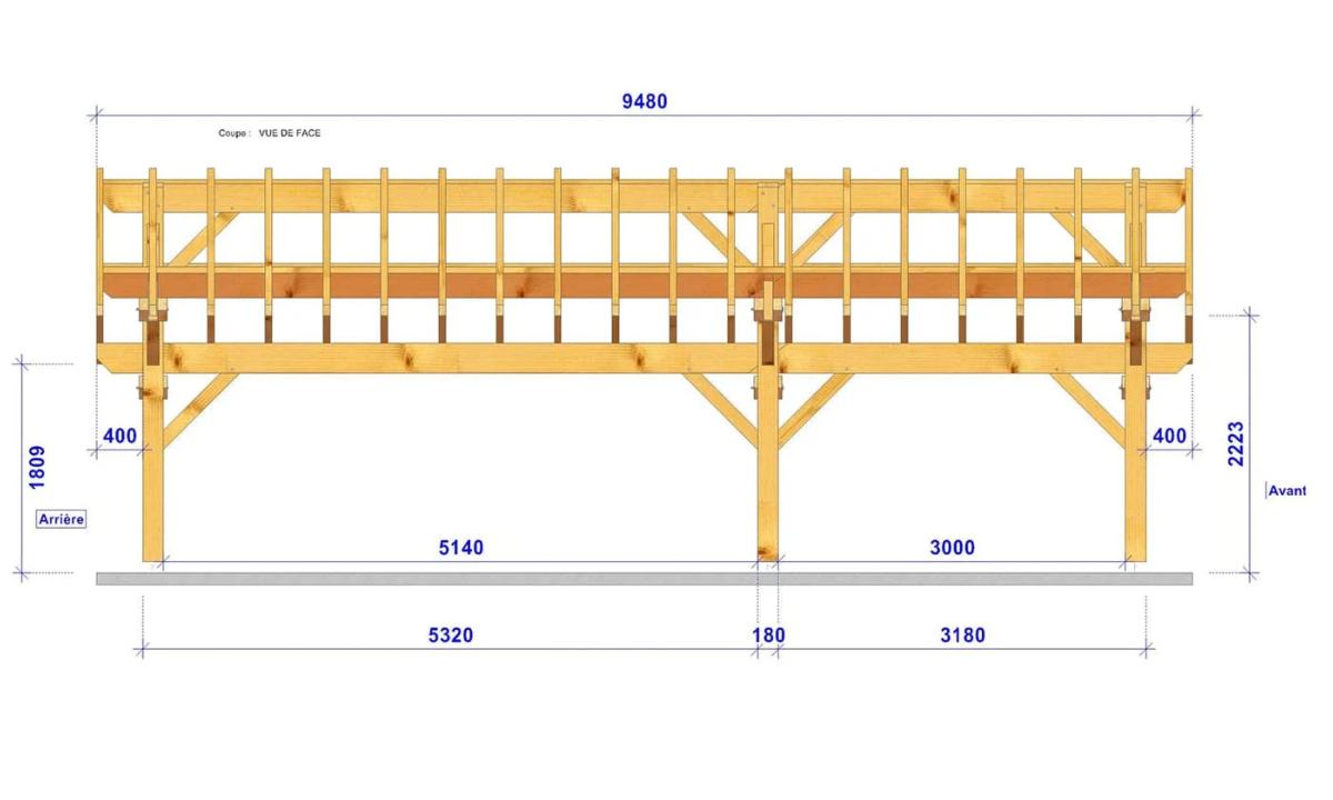 Carport asymétrique 5,41 x 9,48 m en Douglas