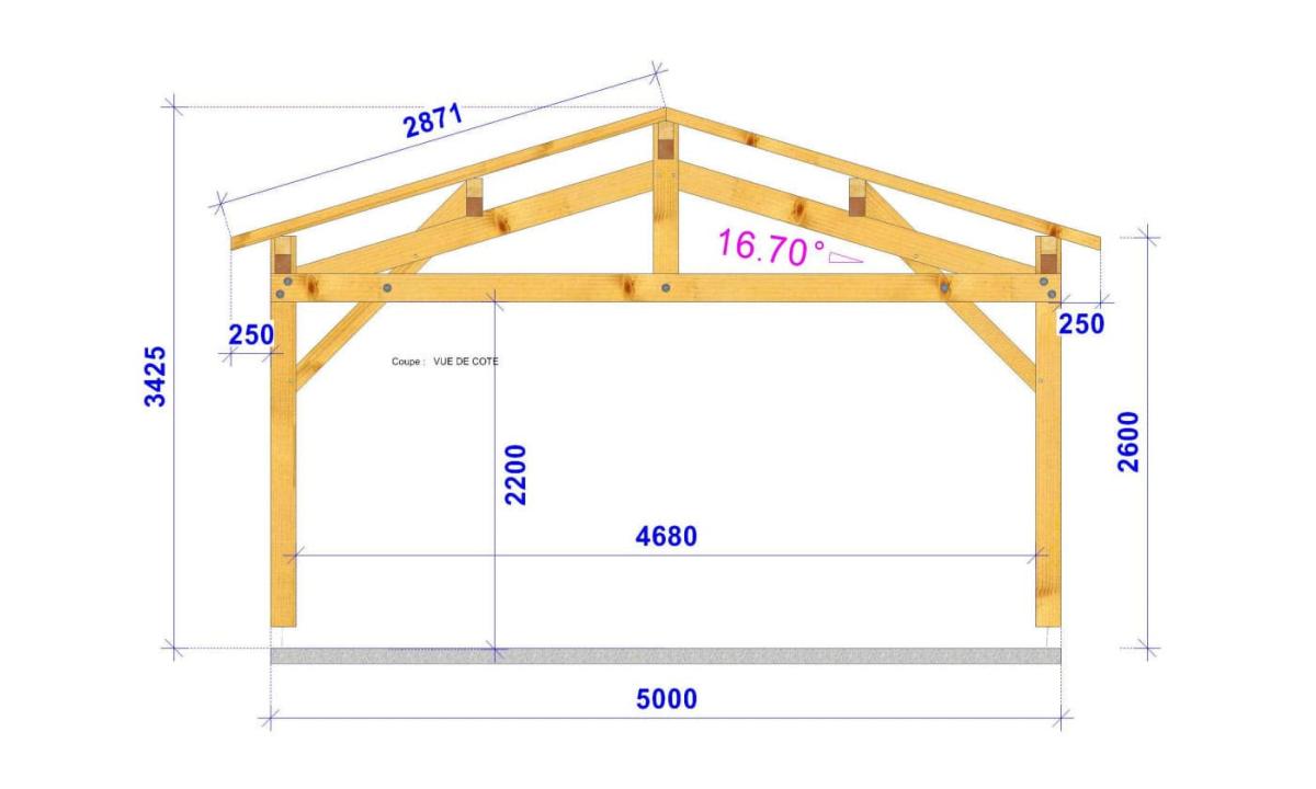 Carport double pentes 5,5 x 5,5 m en Douglas