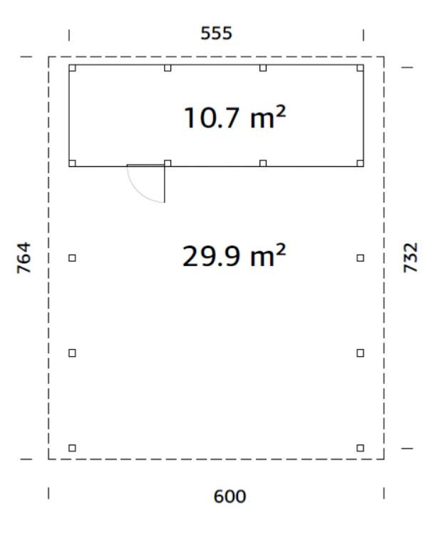 Carport voiture modèle KARL 40.6 m² avec annexe de 10,7 m² fermée