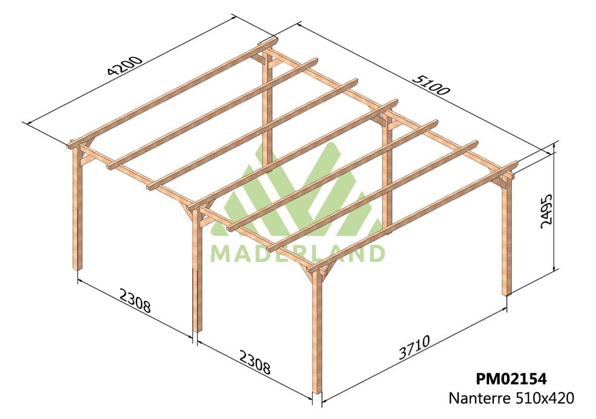 Le carport en bois NANTERRE est fabriquée par Maderland en bois massif traité provenant du nord de l’Europe, où la croissance lente garantit de meilleures propriétés mécaniques face à toute éventuelle adversité, améliorant la résistance à la flexion statique, à la compression et à la traction.