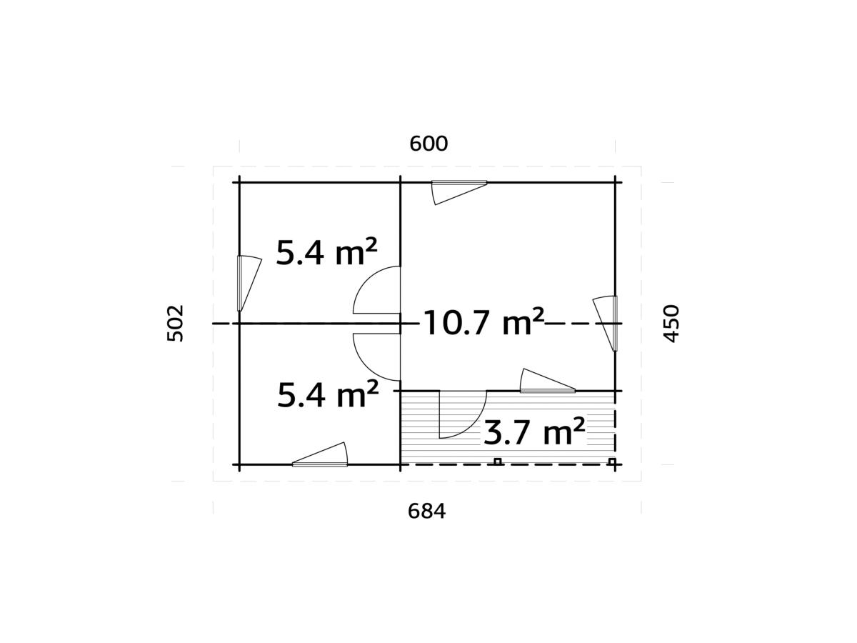 Dimensions extérieures paroi (largeur x profondeur) : 600 x 450 cm= 27 m²