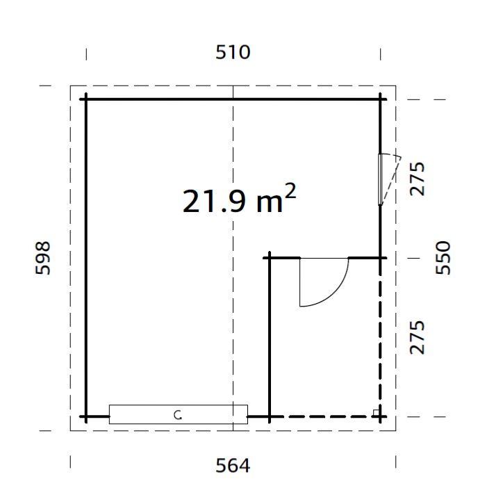 Dimensions intérieures au sol (largeur x profondeur) : 501 x 541 cm - terrasse (189 x 275cm) = 21,9 m²
