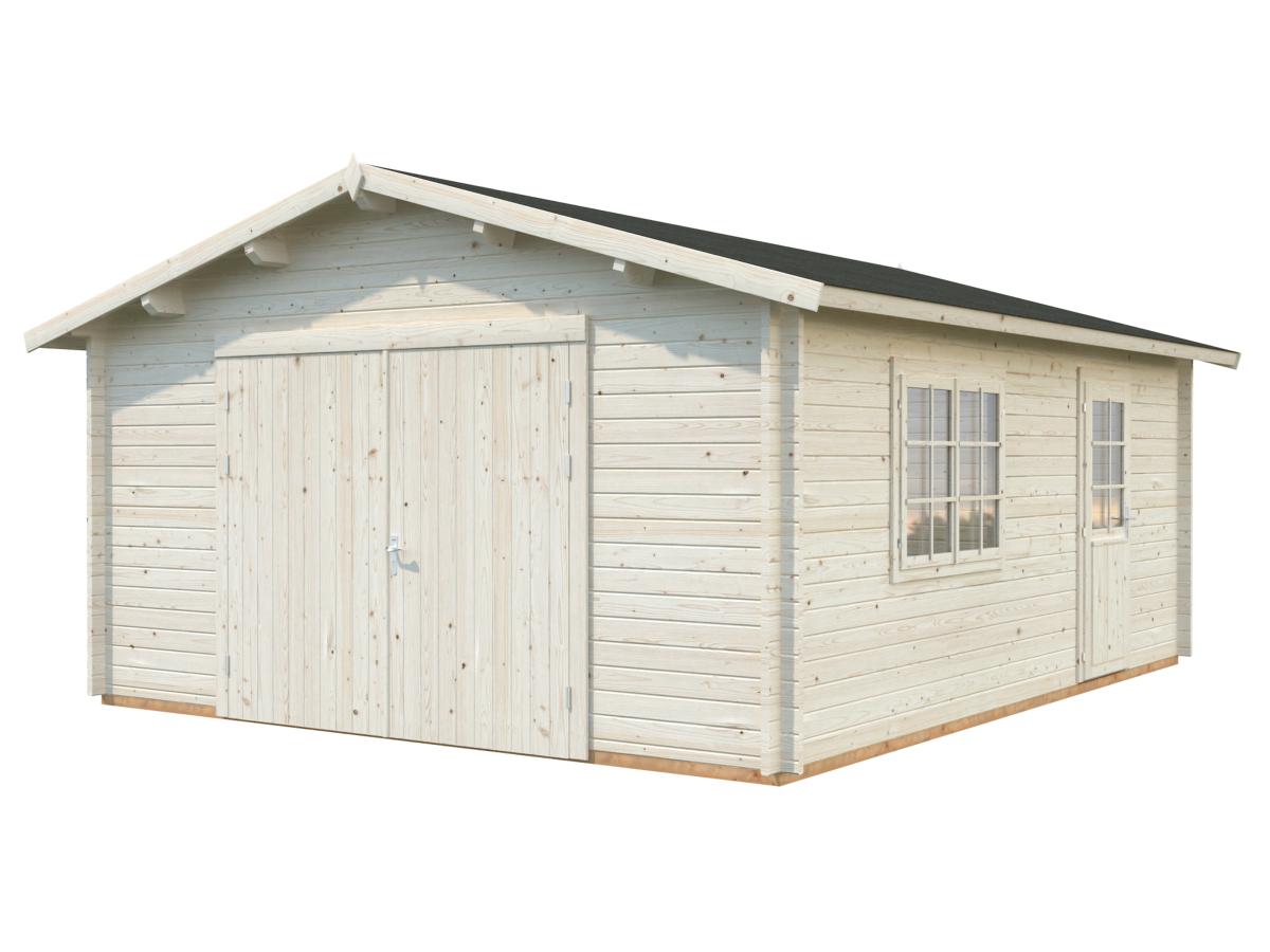 Le garage en bois Palmako Roger 23,9 m² est idéal pour protéger un véhicule, créer un espace de stockage ou un atelier fonctionnel. Sa structure en madriers épais garantit solidité et longévité.