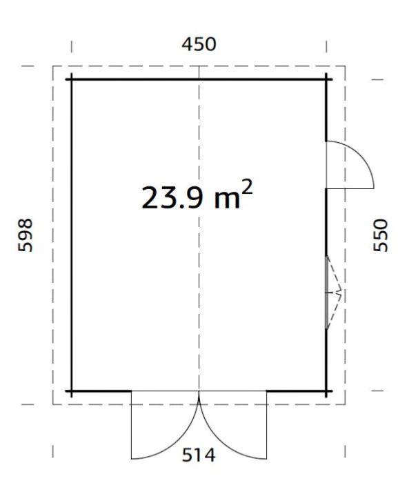 - Dimensions extérieures (L × P) : env. 470 × 520 cm