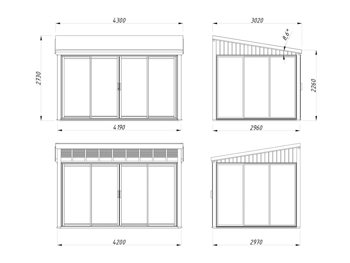 Sa structure en bois massif d’épicéa nordique certifié FSC associée à de larges portes coulissantes en aluminium avec vitrage trempé offre une excellente luminosité et une intégration moderne au jardin.