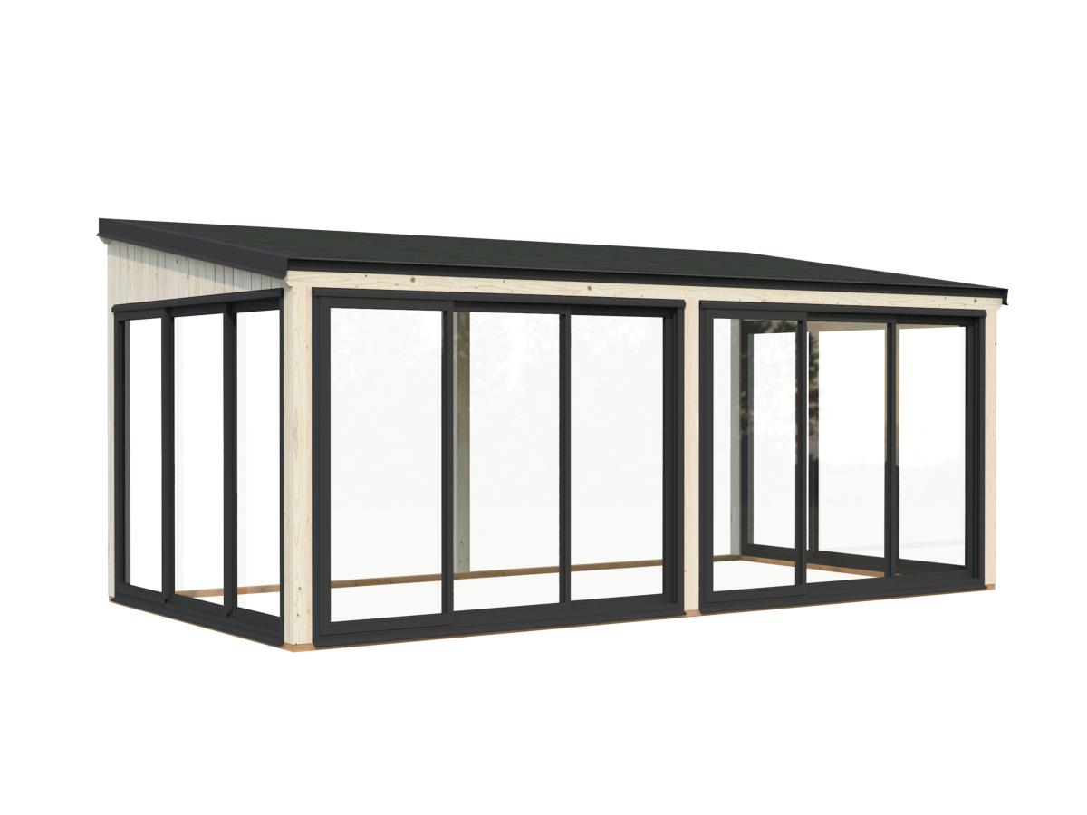 Grâce à ses parois vitrées coulissantes en aluminium et à son vitrage trempé, le Lumi Slide offre une luminosité maximale tout en protégeant des intempéries. Sa structure en épicéa nordique certifié FSC garantit solidité, stabilité et durabilité.