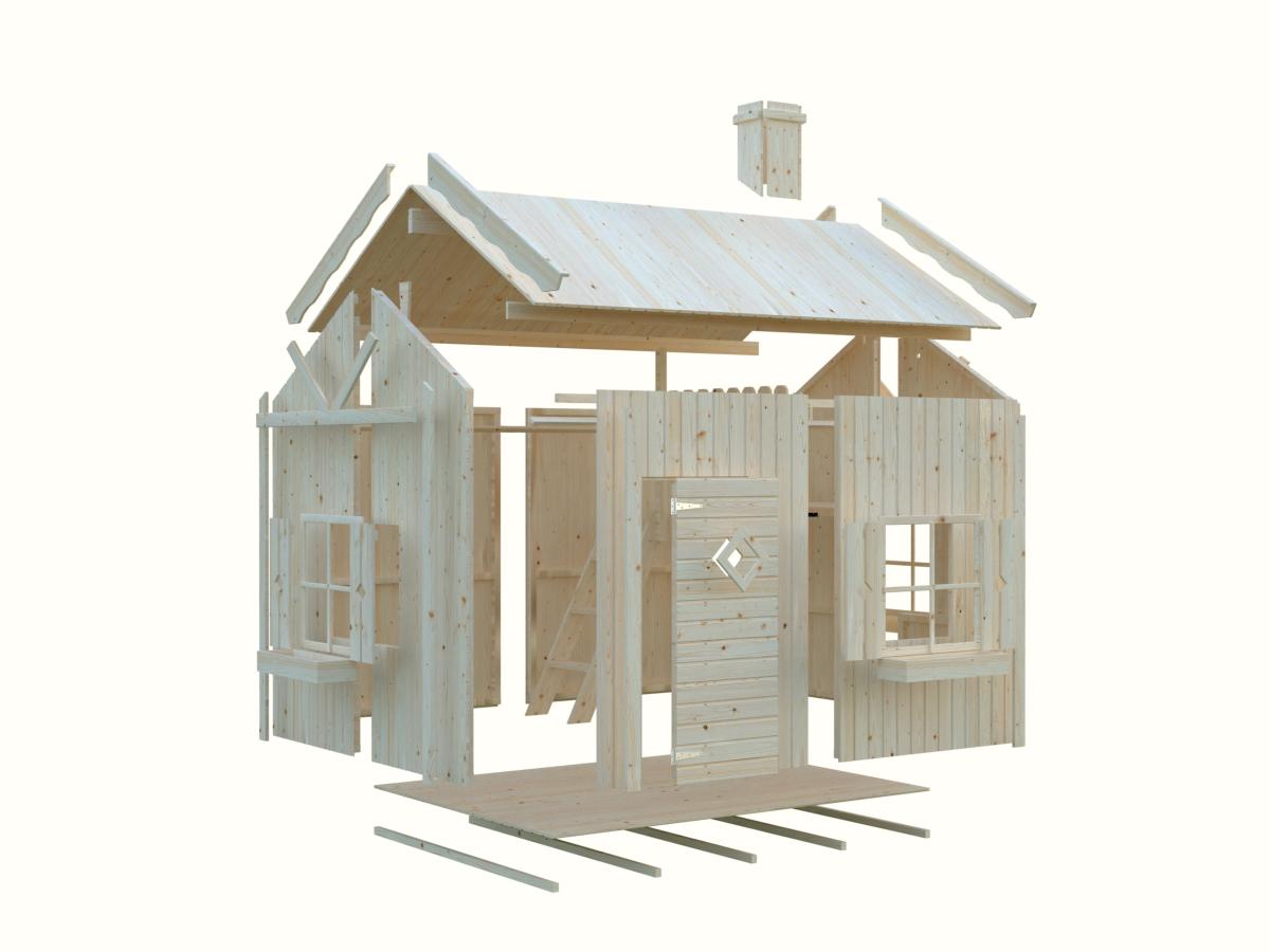 Maisonnette livrée en kit prêt à monter avec notice d’assemblage détaillée.