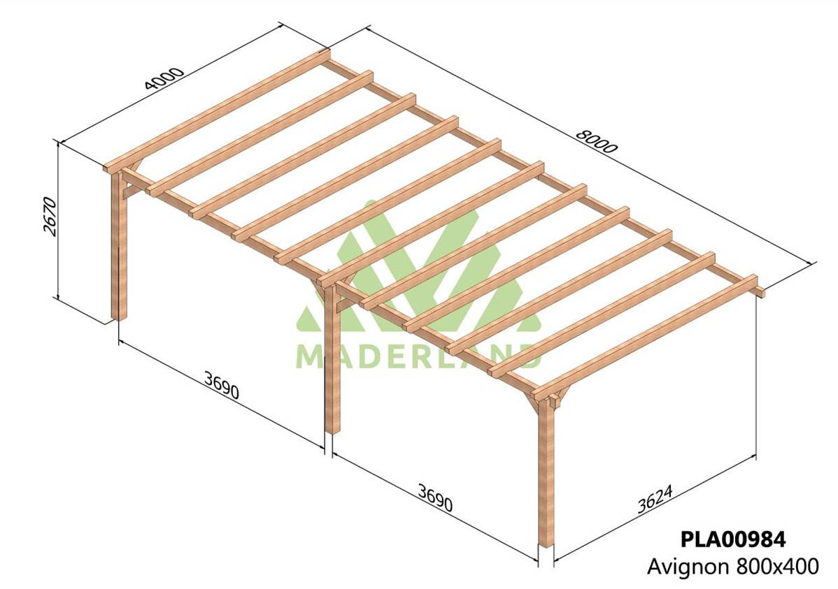 La pergola bois adossée AVIGNON est fabriquée par Maderland en sapin nordique lamellé-collé provenant du nord de l’Europe, où la croissance lente garantit de meilleures propriétés mécaniques face à toute éventuelle adversité, améliorant la résistance à la flexion statique, à la compression et à la traction.