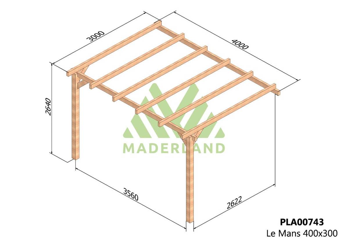 La pergola bois adossée LE MANS est fabriquée par Maderland en sapin nordique lamellé-collé provenant du nord de l’Europe, où la croissance lente garantit de meilleures propriétés mécaniques face à toute éventuelle adversité, améliorant la résistance à la flexion statique, à la compression et à la traction.