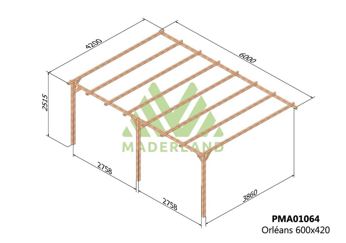 La pergola bois adossée ORLÉNAS est fabriquée par Maderland en bois massif traité provenant du nord de l’Europe, où la croissance lente garantit de meilleures propriétés mécaniques face à toute éventuelle adversité, améliorant la résistance à la flexion statique, à la compression et à la traction.