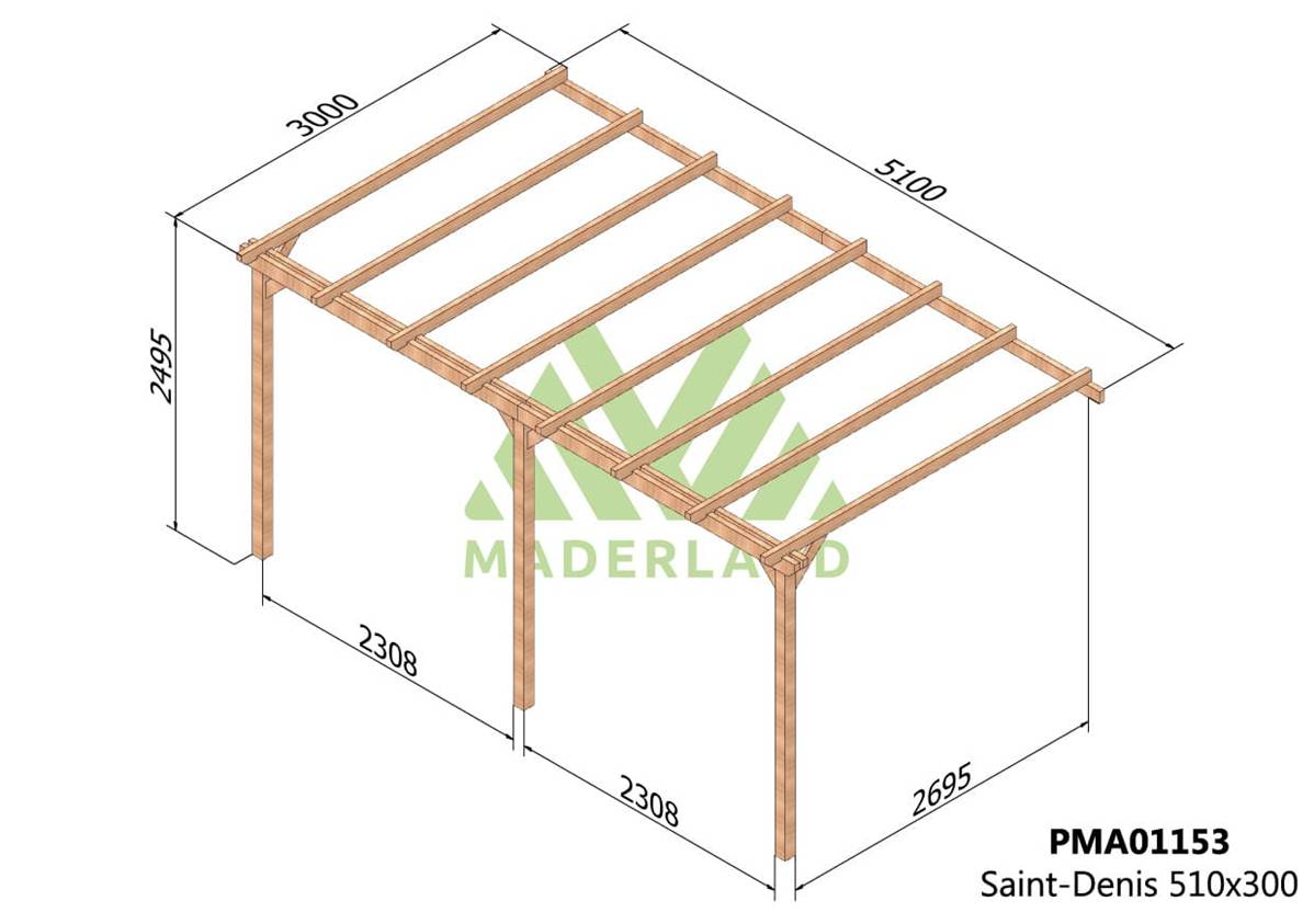 La pergola bois adossée SAINT-DENIS est fabriquée par Maderland en bois massif traité provenant du nord de l’Europe, où la croissance lente garantit de meilleures propriétés mécaniques face à toute éventuelle adversité, améliorant la résistance à la flexion statique, à la compression et à la traction.