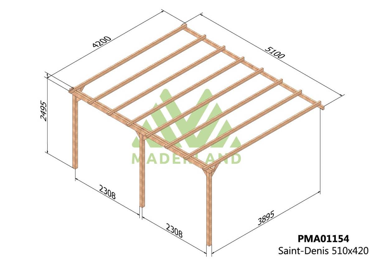La pergola bois adossée SAINT-DENIS est fabriquée par Maderland en bois massif traité provenant du nord de l’Europe, où la croissance lente garantit de meilleures propriétés mécaniques face à toute éventuelle adversité, améliorant la résistance à la flexion statique, à la compression et à la traction.