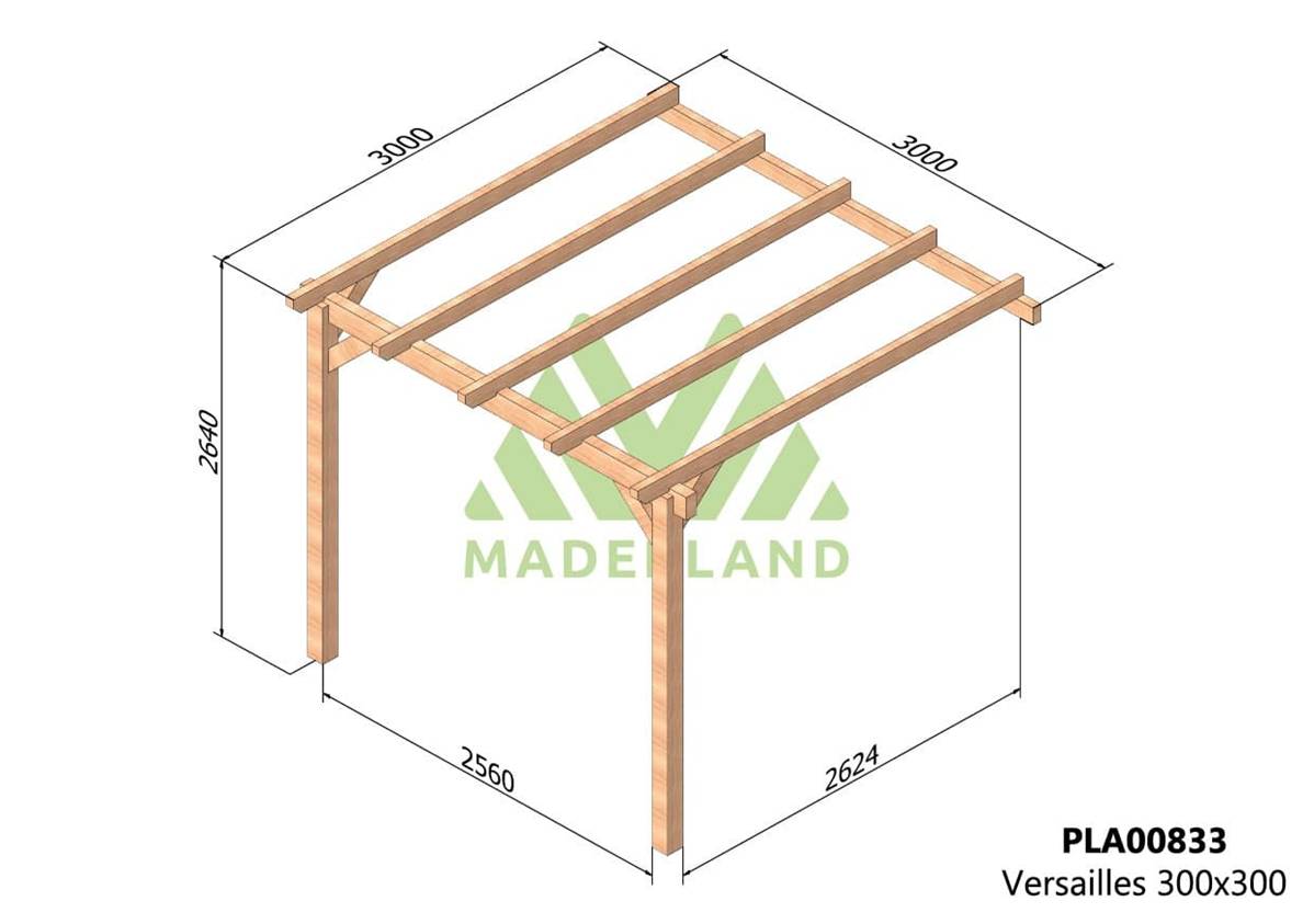 La pergola bois adossée VERSAILLES est fabriquée par Maderland en sapin nordique lamellé-collé provenant du nord de l’Europe, où la croissance lente garantit de meilleures propriétés mécaniques face à toute éventuelle adversité, améliorant la résistance à la flexion statique, à la compression et à la traction.