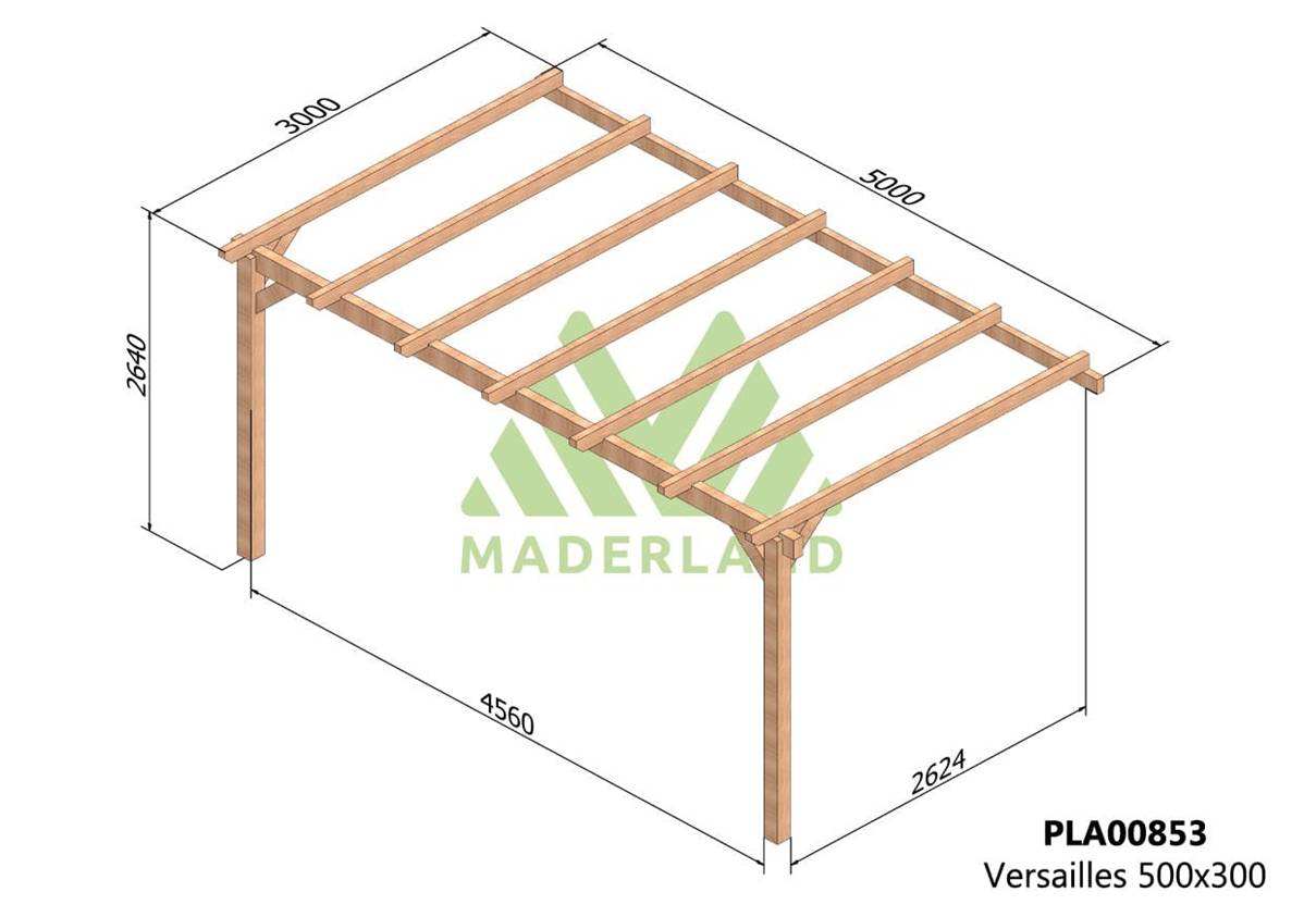 La pergola bois adossée VERSAILLES est fabriquée par Maderland en sapin nordique lamellé-collé provenant du nord de l’Europe, où la croissance lente garantit de meilleures propriétés mécaniques face à toute éventuelle adversité, améliorant la résistance à la flexion statique, à la compression et à la traction.