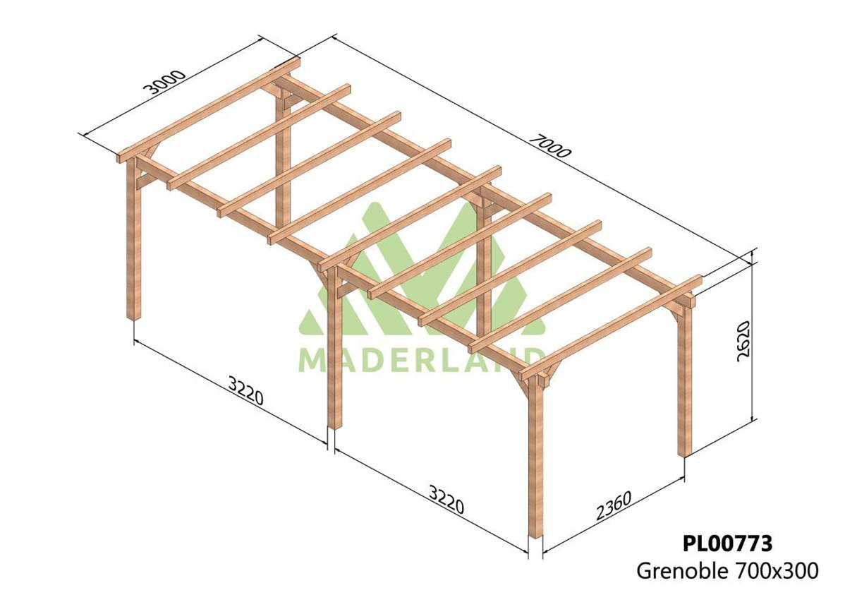 La pergola bois GRENOBLE est fabriquée par Maderland en sapin nordique lamellé-collé provenant du nord de l’Europe, où la croissance lente garantit de meilleures propriétés mécaniques face à toute éventuelle adversité, améliorant la résistance à la flexion statique, à la compression et à la traction.