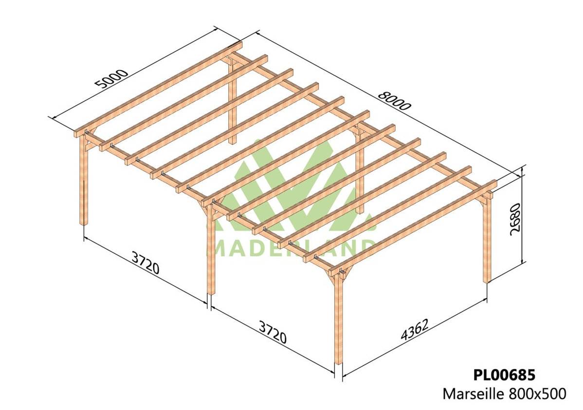La pergola bois MARSEILLE est fabriquée par Maderland en sapin nordique lamellé-collé provenant du nord de l’Europe, où la croissance lente garantit de meilleures propriétés mécaniques face à toute éventuelle adversité, améliorant la résistance à la flexion statique, à la compression et à la traction.