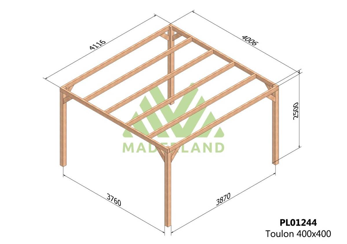 La pergola bois TOULON est fabriquée par Maderland en sapin nordique lamellé-collé provenant du nord de l’Europe, où la croissance lente garantit de meilleures propriétés mécaniques face à toute éventuelle adversité, améliorant la résistance à la flexion statique, à la compression et à la traction.