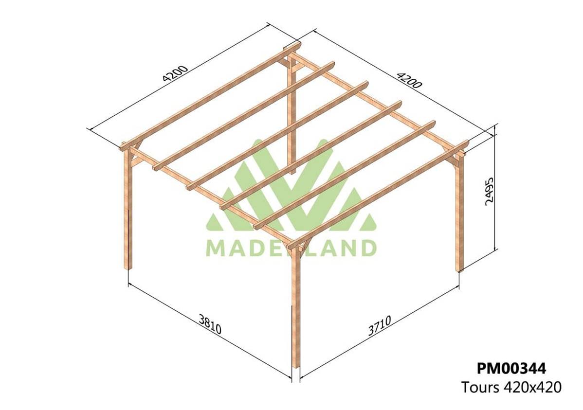 La pergola bois TOURS est fabriquée par Maderland en bois massif traité provenant du nord de l’Europe, où la croissance lente garantit de meilleures propriétés mécaniques face à toute éventuelle adversité, améliorant la résistance à la flexion statique, à la compression et à la traction.