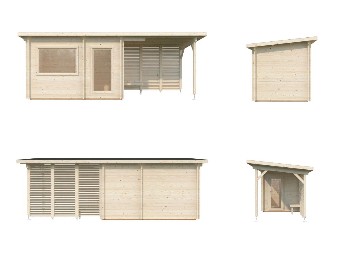 Le sauna de jardin SANNA 6,8 + 5,9 m² est une solution idéale pour profiter des bienfaits du sauna traditionnel à domicile, tout en bénéficiant d’un espace extérieur abrité confortable, avec la qualité reconnue de Palmako.