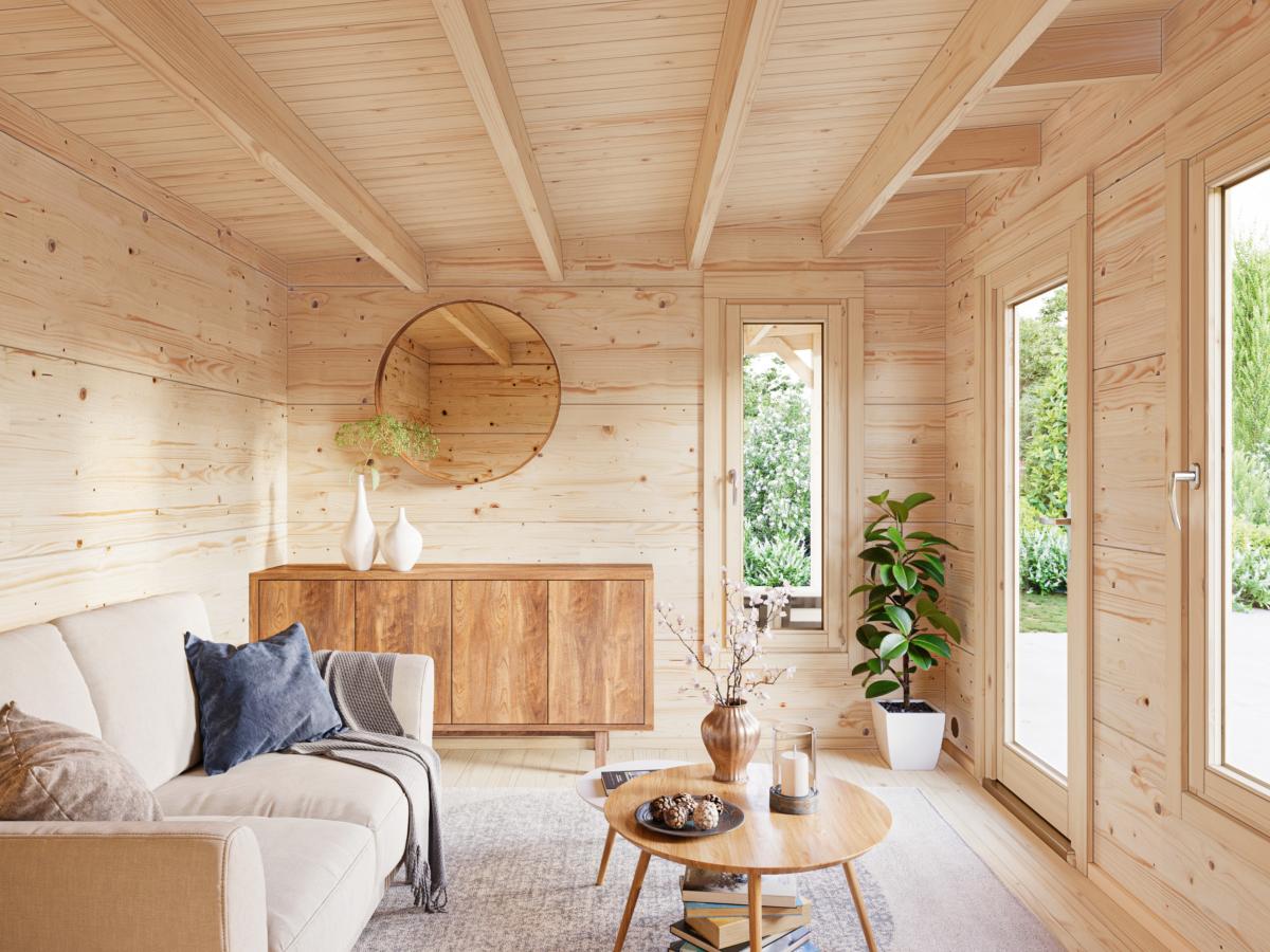 Réalisé en épicéa nordique massif certifié FSC, ce modèle offre une structure robuste et durable. La configuration en deux volumes de 8,1 m² permet de séparer les usages : espace principal et zone secondaire (rangement, atelier, coin détente).