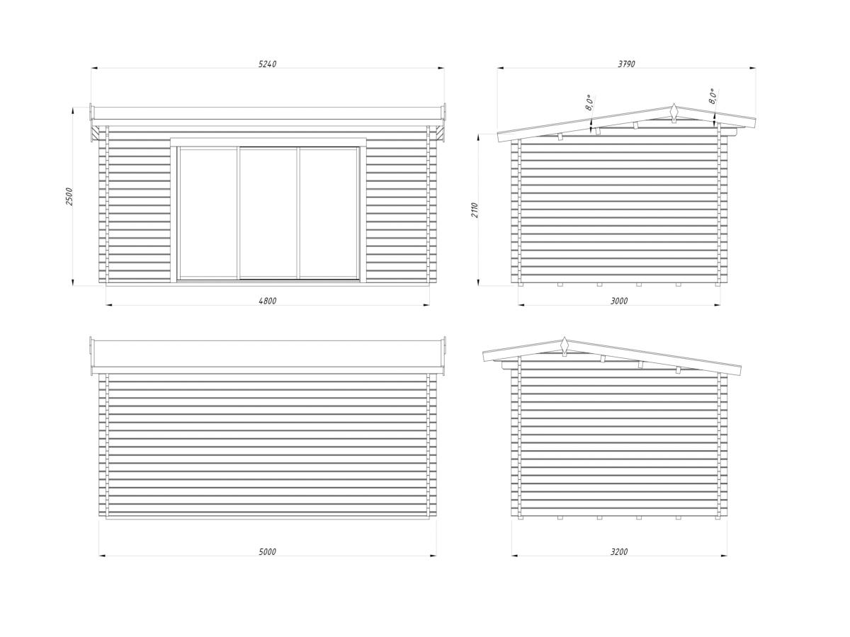 - Dimensions du madrier : 500 × 320 cm