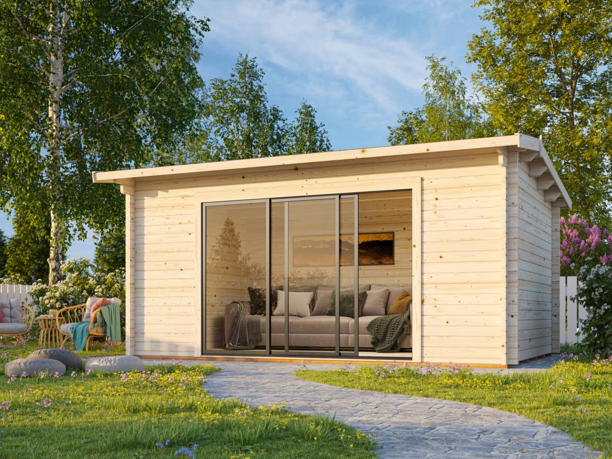 Un studio de jardin en bois massif conçu pour aménager un espace extérieur moderne : chalet de jardin, bureau indépendant ou pièce polyvalente.